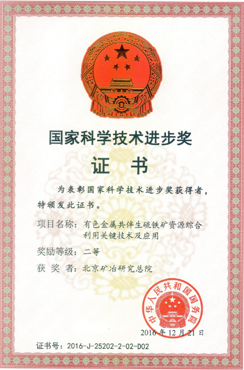 | 3 | 2016 | 國家級 | 國家科技進步獎 | 2 | 國務院 | 有色金屬共伴生硫鐵礦資源綜合利用關鍵技術及應用 |